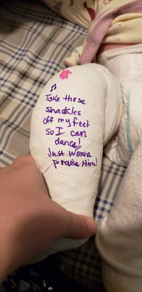 A line from a Christian song that my mother-in-law put on one of my daughter’s casts.