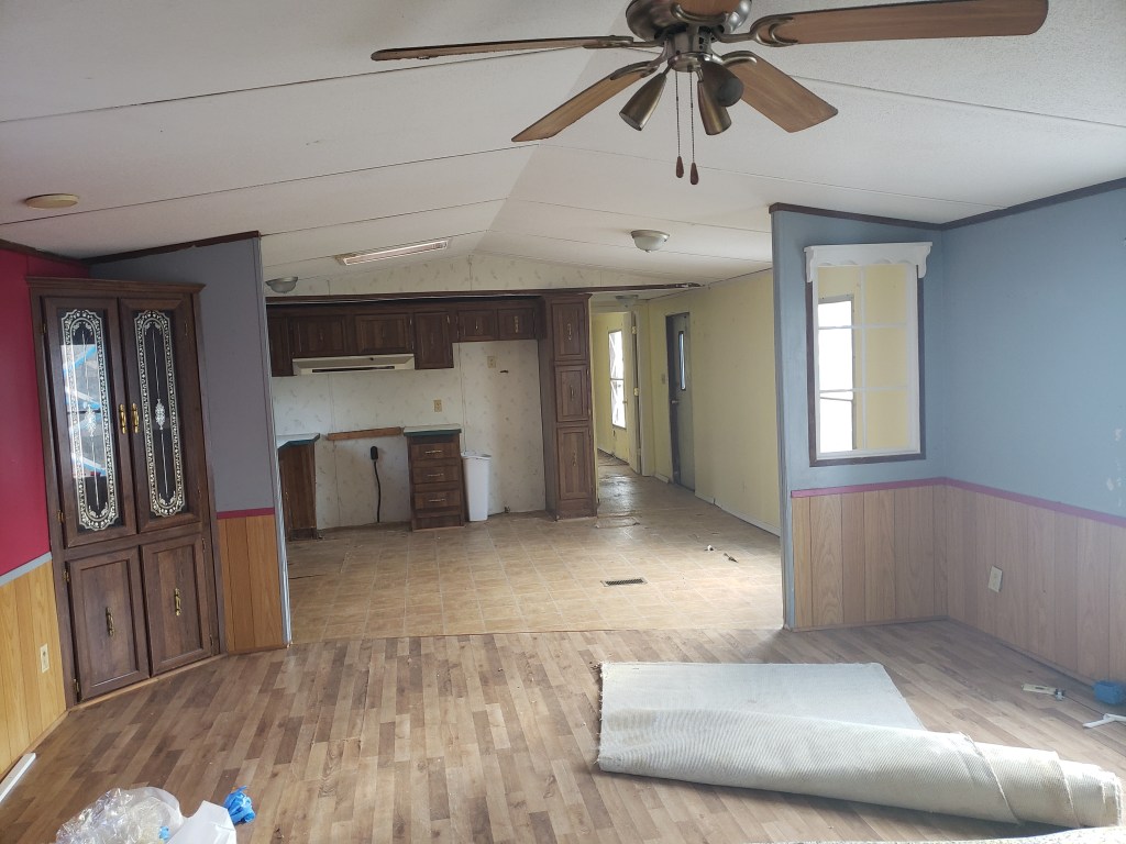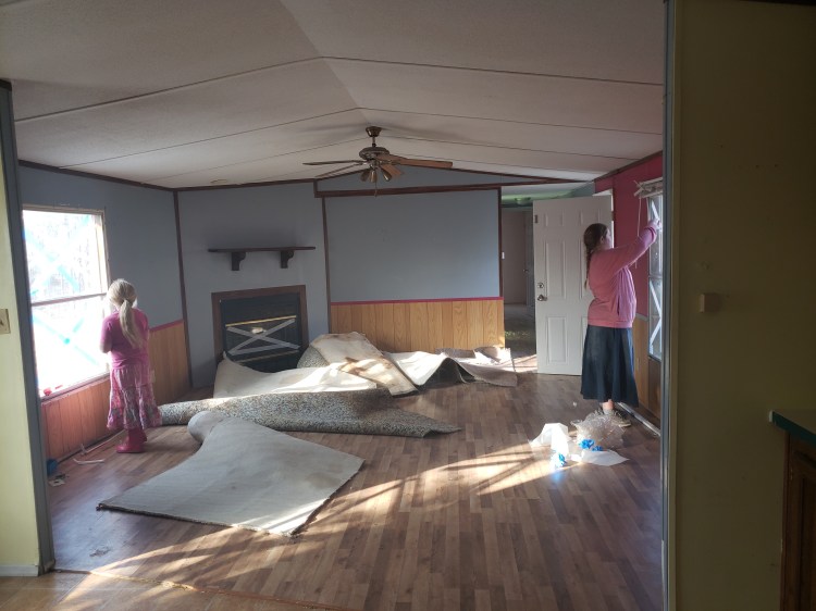Working in the mobile home has been quite a task. It is rewarding to know that I own my home. This blank canvas is very exciting, but I can’t help but wonder how Michelangelo felt looking at a block of marble. Is this trailer going to be my David? Perhaps I am being a bit facetious or even a little dramatic in that comparison, but it does feel a bit daunting at times. Of course, starting was the easy part, as there was an obvious starting point, and it was fresh and exciting to begin. I even wanted to begin tearing into some of the work before our home was home. We were able to tear out most of the old carpet before moving our home, while we waited for the weather to cooperate.