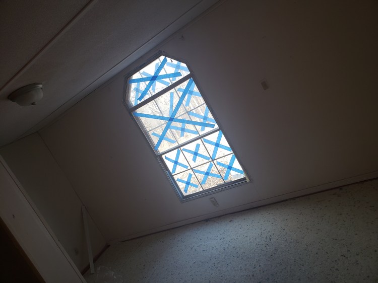 The next order of business was to seal the skylight. I just used what was on hand at the time, which I have used with great success on previous repair jobs, Flex Seal. I have used this stuff before and it has yet to let me down, plus it dries quick, and I needed to get the skylight fixed before the rain hit the next morning. I finished this on the same day as the tie downs.